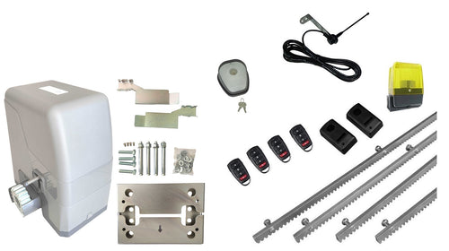 Σετ μηχανισμού συρόμενη γκαραζόπορτας με μοτέρ TRITON-8 για έως 800 κιλά αυλόπορτα και 300 ανοιγοκλεισίματα ημερησίως, ενσωματωμένο πινακοδέκτη, 4m μεταλλική κρεμαγιέρα, 1 ζεύγος φωτοκύτταρα, 1 φανό, 1 εξωτερική κεραία, 1 μπουτόν κλειδί και 4 τηλεχειριστήρια. Περιλαμβάνονται: βάση στήριξης, λαμάκια τερματικών διακοπτών, κλειδιά αποσύμπλεξης και Ελληνικές οδηγίες εγκατάστασης.