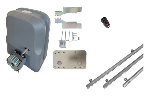 Σετ για συρόμενη γκαραζόπορτα. Περιλαμβάνει μοτέρ SLG600, ενσωματωμένο πινακοδέκτη , 3m μεταλλική κρεμαγιέρα και 1 τηλεχειριστήριο . Επίσης περιλαμβάνονται: βάση στήριξης, λαμάκια ενεργοποίησης τερματικών διακοπτών, κλειδιά αποσύμπλεξης, οδηγίες εγκατάστασης στα Ελληνικά κλπ.