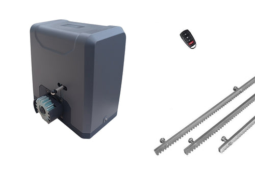Σετ για συρόμενη γκαραζόπορτα με μοτέρ SL1500, για έως 1500 κιλά πόρτα ενσωματωμένο πινακοδέκτη, 3m μεταλλική κρεμαγιέρα και 1 τηλεχειριστήριο . Περιλαμβάνονται: βάση στήριξης, λαμάκια ενεργοποίησης τερματικών διακοπτών, κλειδιά αποσύμπλεξης, οδηγίες εγκατάστασης στα Ελληνικά κλπ.